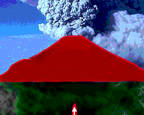 Volcanoes form when hot material from below rises and leaks into the crust. This hot material is called magma. Magma comes either from a melt of subducted crustal material, and which is light and buoyant after melting, or it may come from deeper in the interior of a planet and is light and buoyant because it is *very* hot.